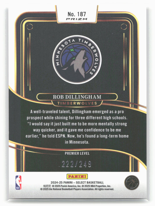 This is a nice example of a 2024-25 Panini Select #187 Rob Dillingham Red Scope Prizm Other important information about this card:SN,RCIn 2024 Rob Dillingham played for the Minnesota Timberwolves.Please...