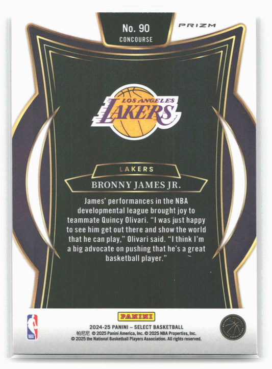 This is a nice example of a 2024-25 Panini Select #90 Bronny James Jr. Silver Prizm Other important information about this card:RCIn 2024 Bronny James Jr. played for the Los...