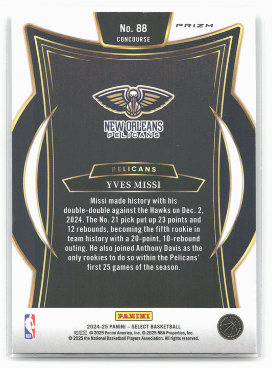 This is a nice example of a 2024-25 Panini Select #88 Yves Missi Scope Prizm Other important information about this card:RCIn 2024 Yves Missi played for the New Orleans Pelicans.Please...