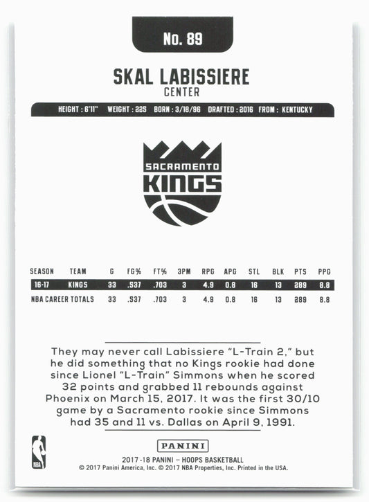 This is a nice example of a 2017-18 Hoops #89 Skal Labissiere Other important information about this card:In 2017 Skal Labissiere played for the Sacramento Kings.Please check out our other...