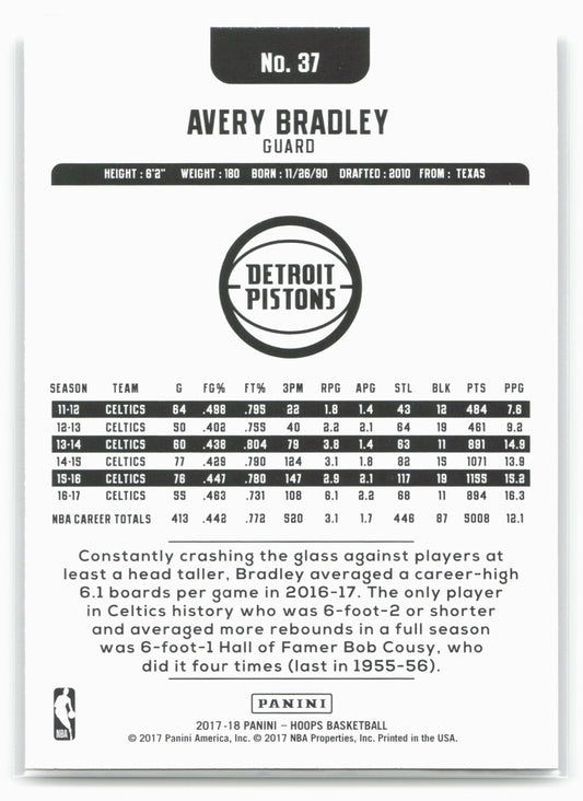 This is a nice example of a 2017-18 Hoops #37 Avery Bradley Other important information about this card:In 2017 Avery Bradley played for the Detroit Pistons.Please check out our other...