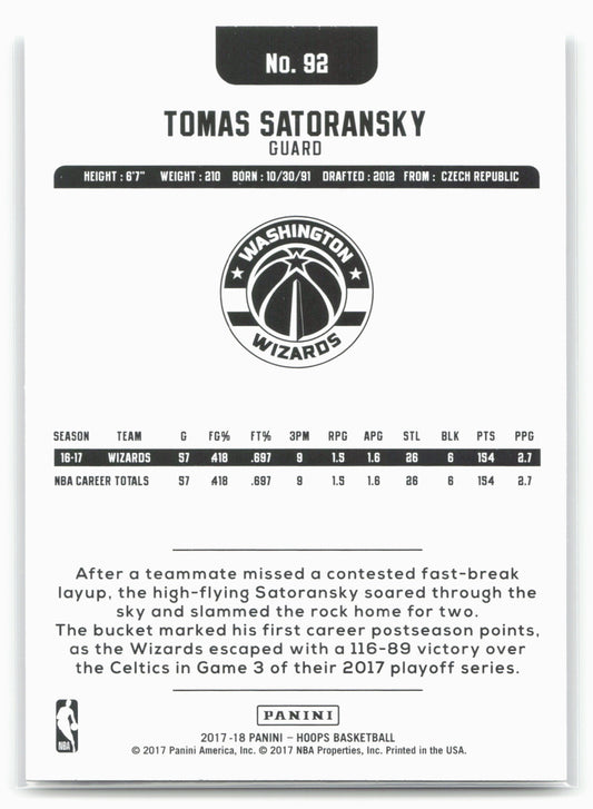 This is a nice example of a 2017-18 Hoops #92 Tomas Satoransky Other important information about this card:In 2017 Tomas Satoransky played for the Washington Wizards.Please check out our other...