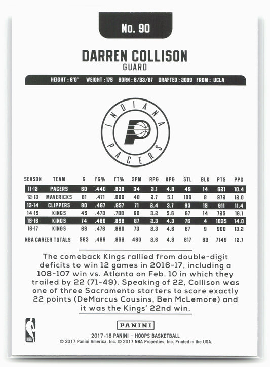 This is a nice example of a 2017-18 Hoops #90 Darren Collison Other important information about this card:In 2017 Darren Collison played for the Indiana Pacers.Please check out our other...