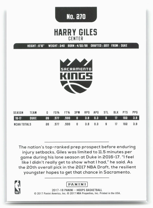 This is a nice example of a 2017-18 Hoops #270 Harry Giles Other important information about this card:RCIn 2017 Harry Giles played for the Sacramento Kings.Please check out our other...