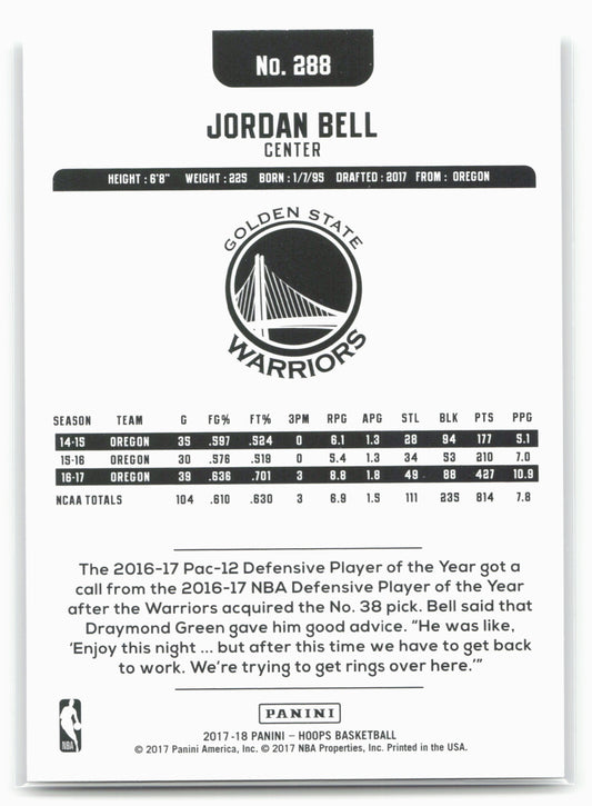 This is a nice example of a 2017-18 Hoops #288 Jordan Bell Other important information about this card:RCIn 2017 Jordan Bell played for the Golden State Warriors.Please check out our...