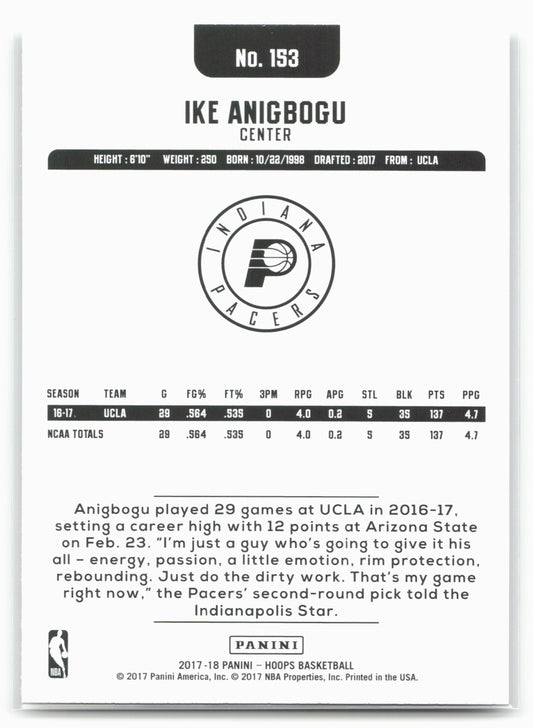 This is a nice example of a 2017-18 Hoops #153 Ike Anigbogu Other important information about this card:RCIn 2017 Ike Anigbogu played for the Indiana Pacers.Please check out our other...