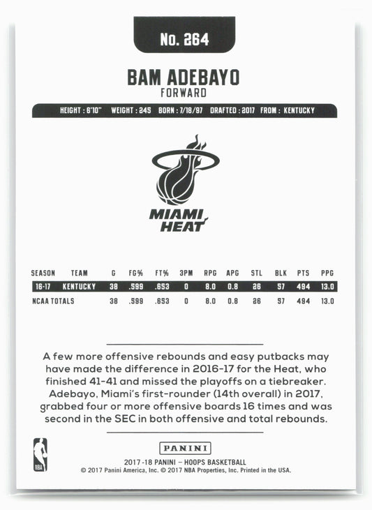This is a nice example of a 2017-18 Hoops #264 Bam Adebayo Other important information about this card:RCIn 2017 Bam Adebayo played for the Miami Heat.Please check out our other...