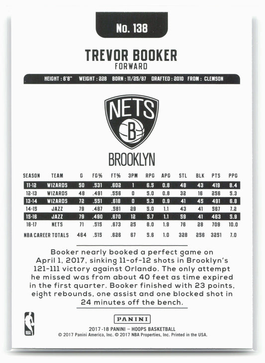 This is a nice example of a 2017-18 Hoops #138 Trevor Booker Other important information about this card:In 2017 Trevor Booker played for the Brooklyn Nets.Please check out our other...