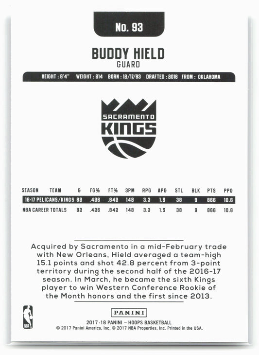 This is a nice example of a 2017-18 Hoops #93 Buddy Hield Other important information about this card:In 2017 Buddy Hield played for the Sacramento Kings.Please check out our other...