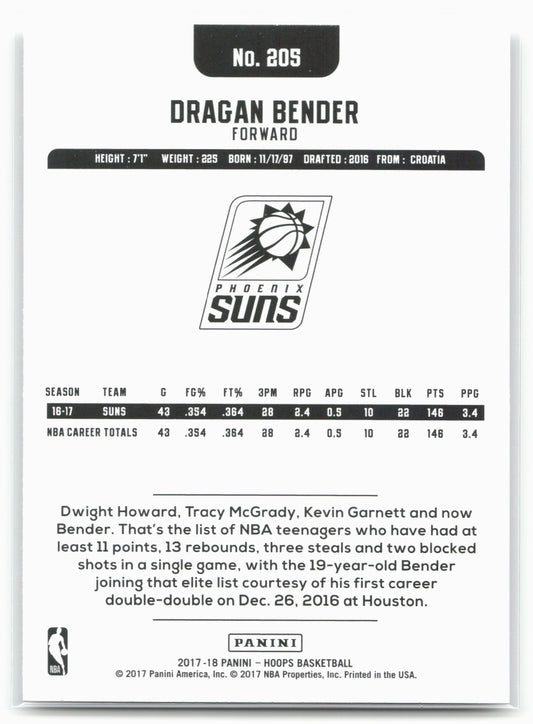 This is a nice example of a 2017-18 Hoops #205 Dragan Bender Other important information about this card:In 2017 Dragan Bender played for the Phoenix Suns.Please check out our other...
