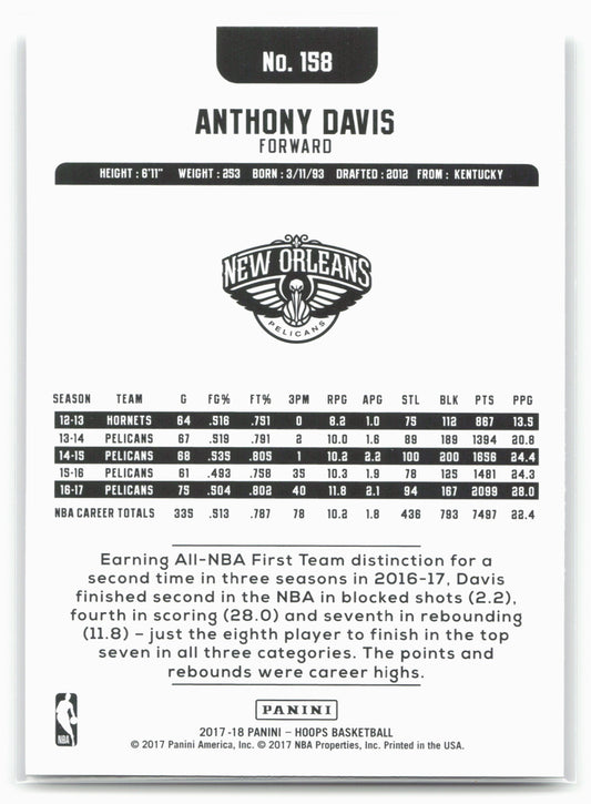 This is a nice example of a 2017-18 Hoops #158 Anthony Davis Other important information about this card:In 2017 Anthony Davis played for the New Orleans Pelicans.Please check out our...