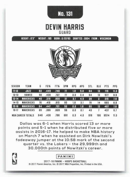 This is a nice example of a 2017-18 Hoops #131 Devin Harris Other important information about this card:In 2017 Devin Harris played for the Dallas Mavericks.Please check out our other...