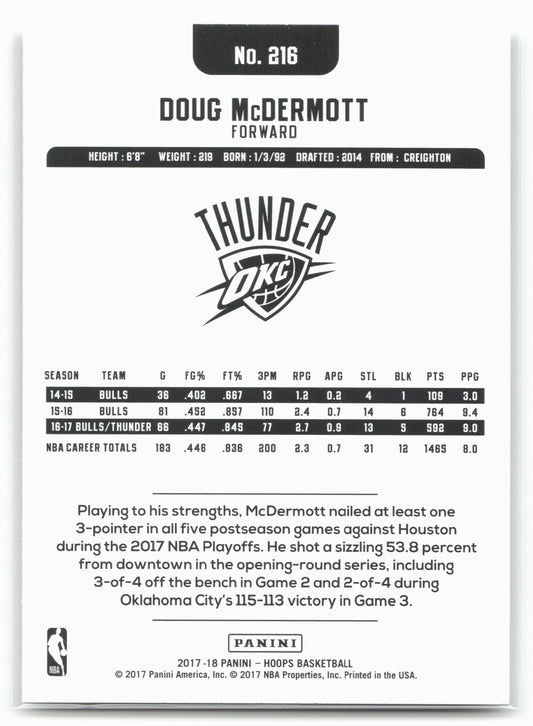 This is a nice example of a 2017-18 Hoops #216 Doug McDermott Other important information about this card:In 2017 Doug McDermott played for the Oklahoma City Thunder.Please check out our...