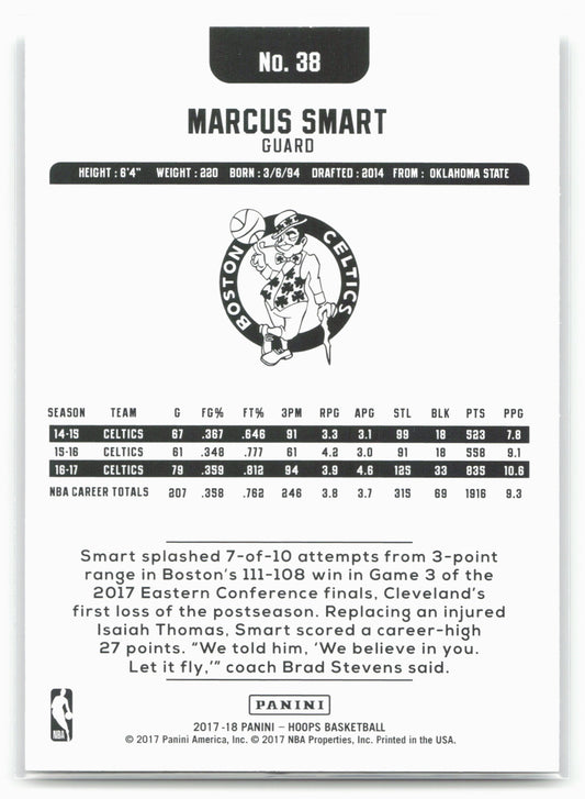 This is a nice example of a 2017-18 Hoops #38 Marcus Smart Other important information about this card:In 2017 Marcus Smart played for the Boston Celtics.Please check out our other...