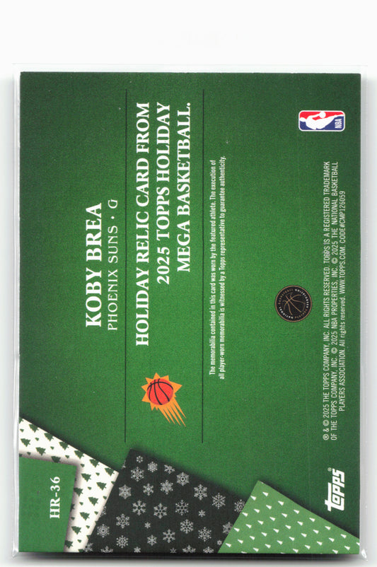 This is a nice example of a 2025-26 Topps Holiday #HR-36 Koby Brea Holiday Relics Other important information about this card:25127MEMIn 2025 Koby Brea played for the Phoenix Suns.Please check...