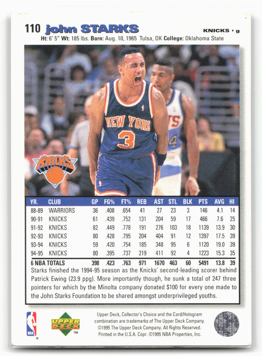 This is a nice example of a 1995-96 Collector's Choice #110 John Starks Player's Club Other important information about this card:27584In 1995 John Starks played for the New York Knicks.Please...