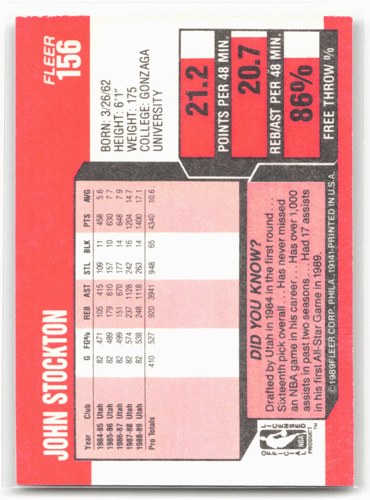 This is a nice example of a 1989-90 Fleer #156 John Stockton Other important information about this card:In 1989 John Stockton played for the Utah Jazz.Please check out our other...