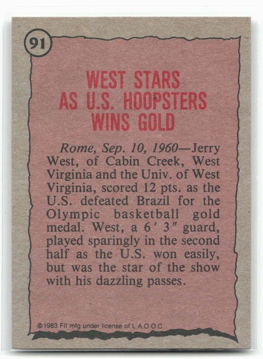 This is a nice example of a 1983 Topps Greatest Olympians #91 Jerry West Other important information about this card:In 1983 Jerry West played for the USA.Please check out our...