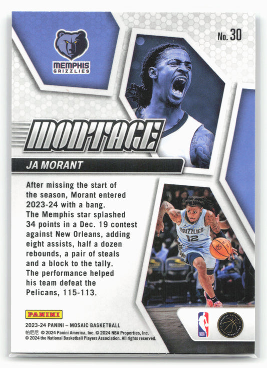This is a nice example of a 2023-24 Panini Mosaic #30 Ja Morant Montage Other important information about this card:27596In 2023 Ja Morant played for the Memphis Grizzlies.Please check out...