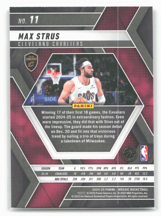 This is a nice example of a 2024-25 Panini Mosaic #11 Max Strus Other important information about this card:In 2024 Max Strus played for the Cleveland Cavaliers.Please check out our...
