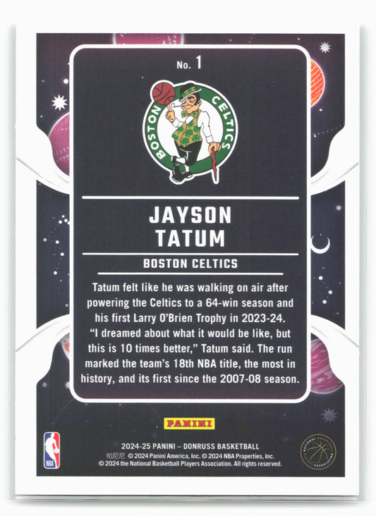 This is a nice example of a 2024-25 Donruss #1 Jayson Tatum Zero Gravity Other important information about this card:In 2024 Jayson Tatum played for the Boston Celtics.Please check out...