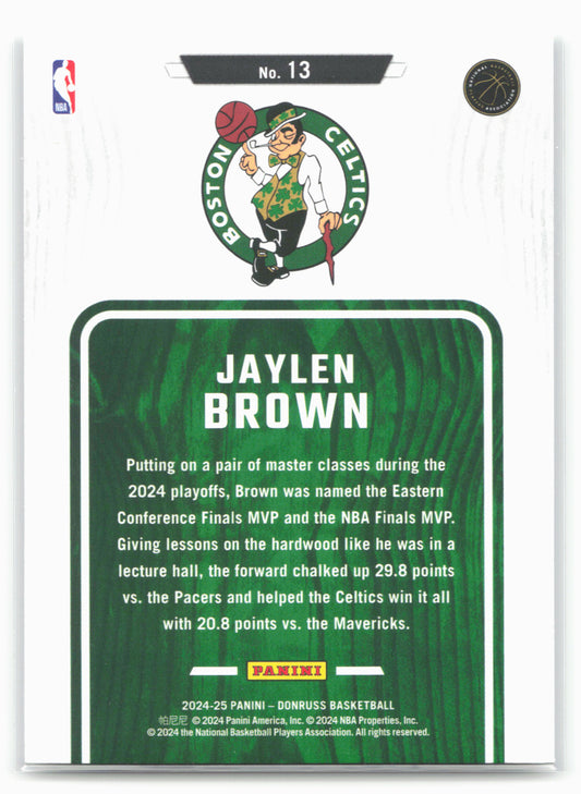 This is a nice example of a 2024-25 Donruss #13 Jaylen Brown Hardwood Masters Other important information about this card:In 2024 Jaylen Brown played for the Boston Celtics.Please check out...