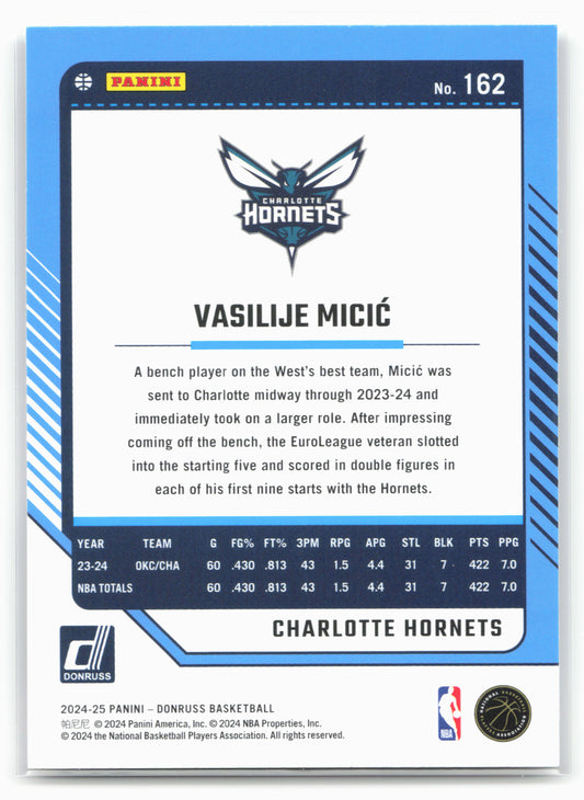 This is a nice example of a 2024-25 Donruss #162 Vasilije Micic Other important information about this card:In 2024 Vasilije Micic played for the Charlotte Hornets.Please check out our other...
