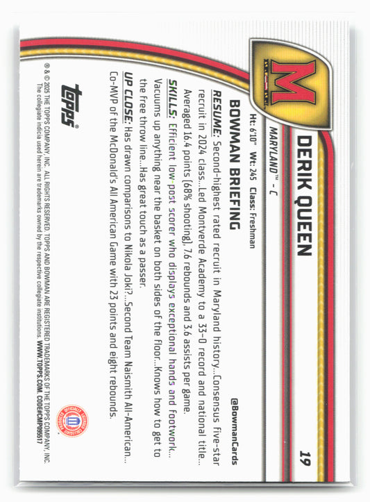 This is a nice example of a 2024-25 Bowman University Chrome #19 Derik Queen Other important information about this card:17946In 2024 Derik Queen played for the Maryland Terrapins.Please check out...