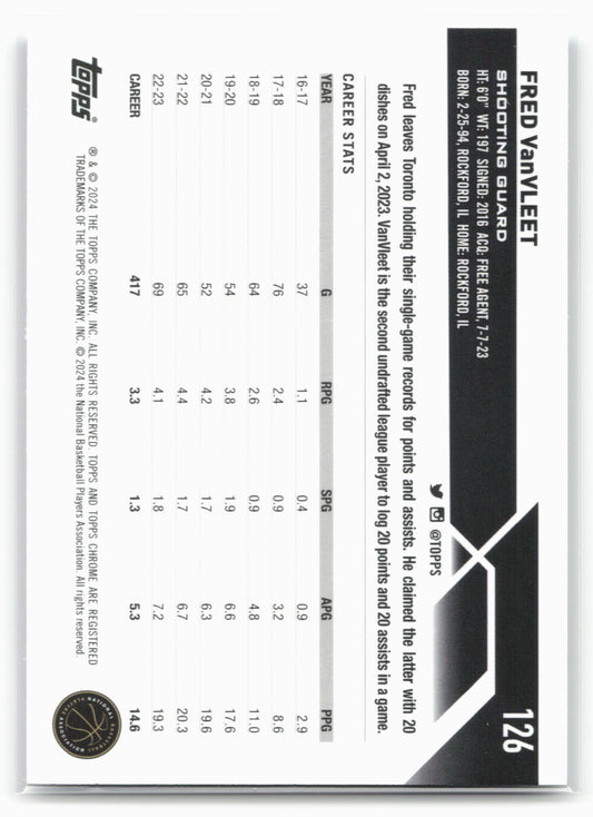 This is a nice example of a 2023-24 Topps Chrome #126 Fred VanVleet Negative Refractors Other important information about this card:In 2023 Fred VanVleet played for the Houston Rockets.Please check...