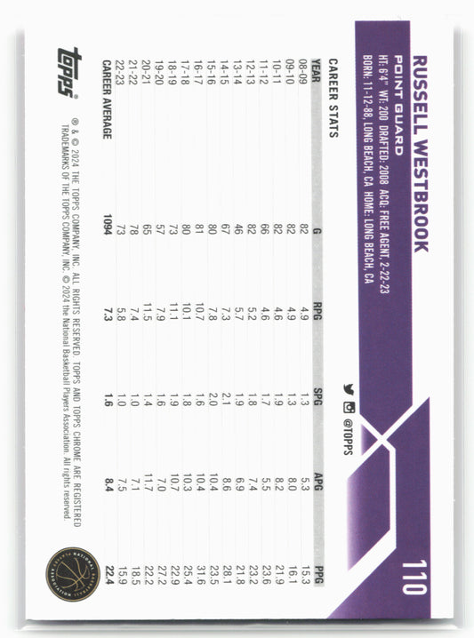 This is a nice example of a 2023-24 Topps Chrome #110 Russell Westbrook Pink Refractors Other important information about this card:In 2023 Russell Westbrook played for the Los Angeles Clippers.Please...