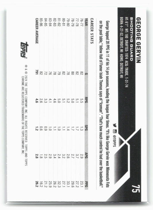 This is a nice example of a 2023-24 Topps Chrome #75 George Gervin Green Wave Refractors Other important information about this card:SNIn 2023 George Gervin played for the San Antonio...