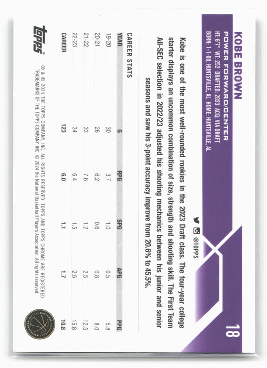 This is a nice example of a 2023-24 Topps Chrome #18 Kobe Brown Other important information about this card:17787RCIn 2023 Kobe Brown played for the Los Angeles Clippers.Please check out...