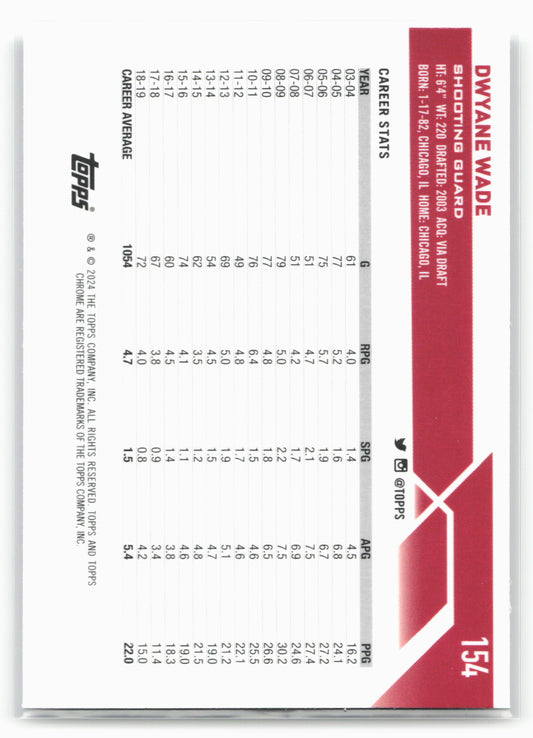 This is a nice example of a 2023-24 Topps Chrome #154 Dwyane Wade Other important information about this card:17792In 2023 Dwyane Wade played for the Miami Heat.Please check out our...