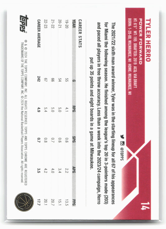 This is a nice example of a 2023-24 Topps Chrome #14 Tyler Herro Other important information about this card:17797In 2023 Tyler Herro played for the Miami Heat.Please check out our...