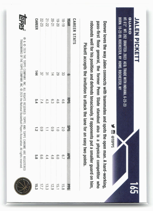 This is a nice example of a 2023-24 Topps Chrome #165 Jalen Pickett Other important information about this card:17799RCIn 2023 Jalen Pickett played for the Denver Nuggets.Please check out our...