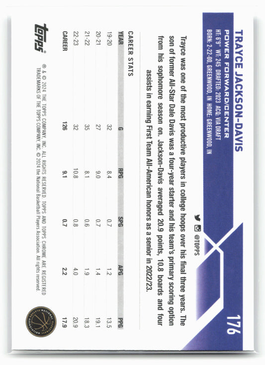 This is a nice example of a 2023-24 Topps Chrome #176 Trayce Jackson-Davis Other important information about this card:RCIn 2023 Trayce Jackson-Davis played for the Golden State Warriors.Please check out...