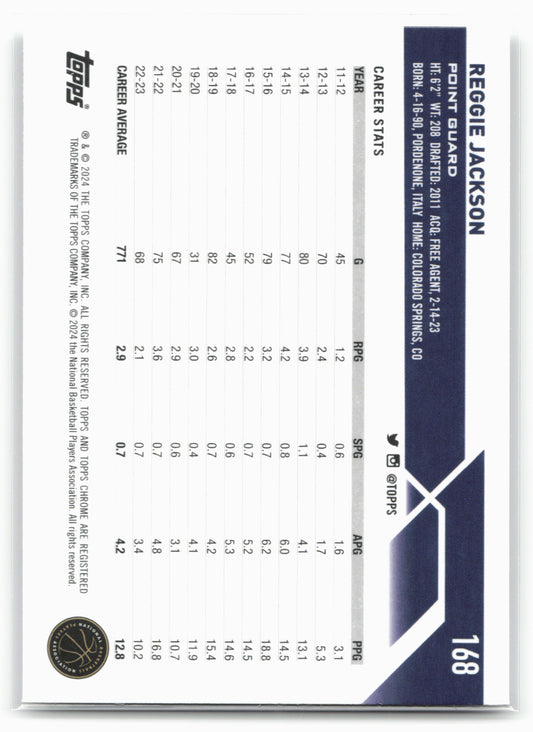 This is a nice example of a 2023-24 Topps Chrome #168 Reggie Jackson Other important information about this card:In 2023 Reggie Jackson played for the Denver Nuggets.Please check out our...