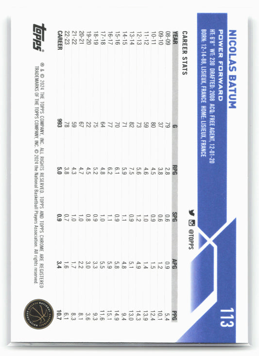 This is a nice example of a 2023-24 Topps Chrome #113 Nicolas Batum Other important information about this card:In 2023 Nicolas Batum played for the Philadelphia 76ers.Please check out our...