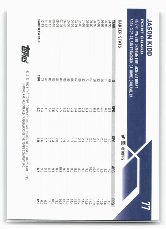 This is a nice example of a 2023-24 Topps Chrome #77 Jason Kidd Other important information about this card:17755In 2023 Jason Kidd played for the Dallas Mavericks.Please check out our...