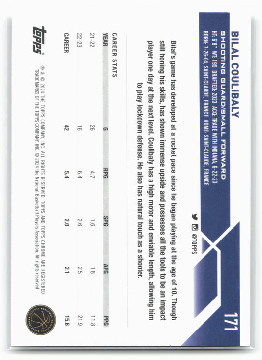 This is a nice example of a 2023-24 Topps Chrome #171 Bilal Coulibaly Other important information about this card:17757RCIn 2023 Bilal Coulibaly played for the Washington Wizards.Please check out our...