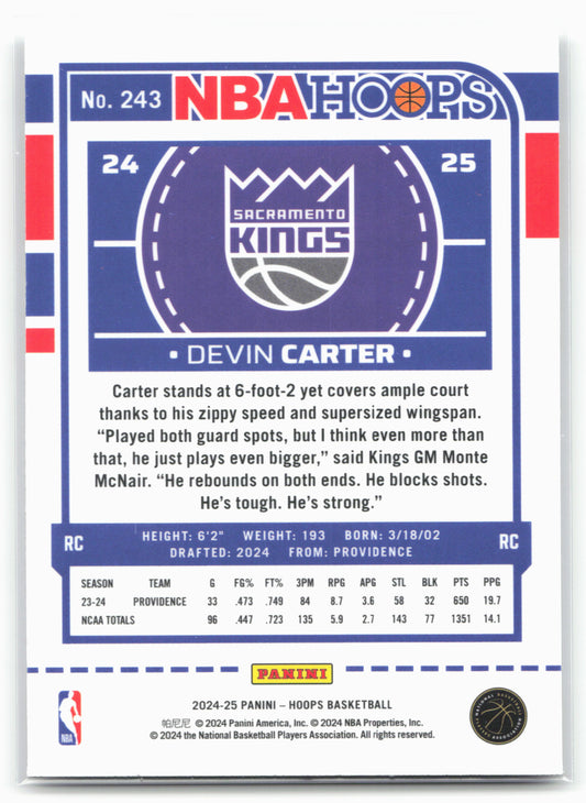 This is a nice example of a 2024-25 Hoops #243 Devin Carter Premium Other important information about this card:RCIn 2024 Devin Carter played for the Sacramento Kings.Please check out our...