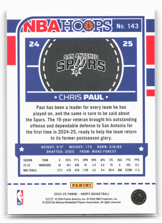 This is a nice example of a 2024-25 Hoops #143 Chris Paul Premium Other important information about this card:In 2024 Chris Paul played for the San Antonio Spurs.Please check out...
