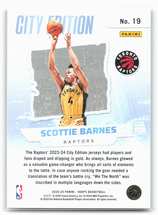 This is a nice example of a 2024-25 Hoops #19 Scottie Barnes City Edition Other important information about this card:In 2024 Scottie Barnes played for the Toronto Raptors.Please check out...