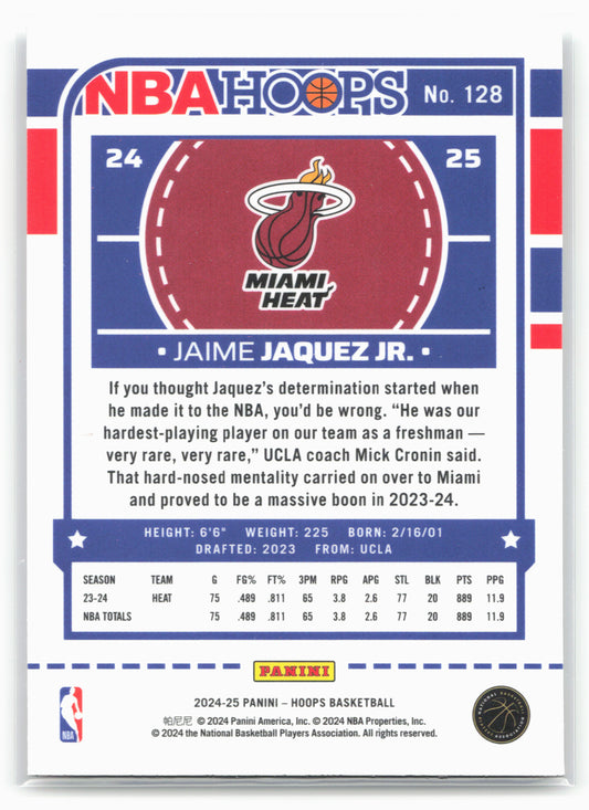 This is a nice example of a 2024-25 Hoops #128 Jaime Jaquez Jr. Premium Other important information about this card:In 2024 Jaime Jaquez Jr. played for the Miami Heat.Please check...