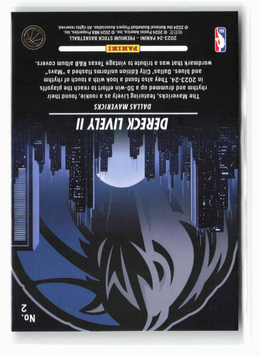 This is a nice example of a 2023-24 Panini Premium Stock #2 Dereck Lively II City Edition Other important information about this card:In 2023 Dereck Lively II played for the...