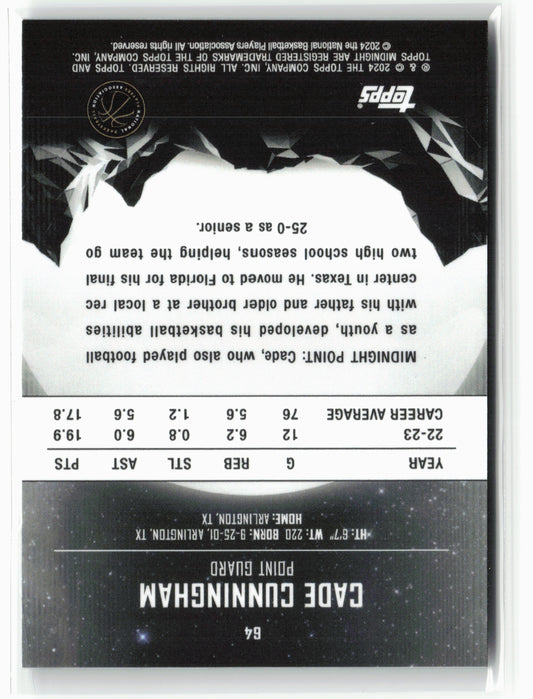 This is a nice example of a 2023-24 Topps Midnight #64 Cade Cunningham Other important information about this card:In 2023 Cade Cunningham played for the Detroit Pistons.Please check out our...