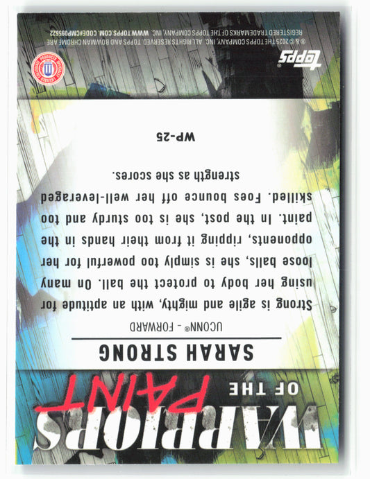 This is a nice example of a 2024-25 Bowman University Chrome #WP-25 Sarah Strong Warriors in the Paint Other important information about this card:In 2024 Sarah Strong played for the...