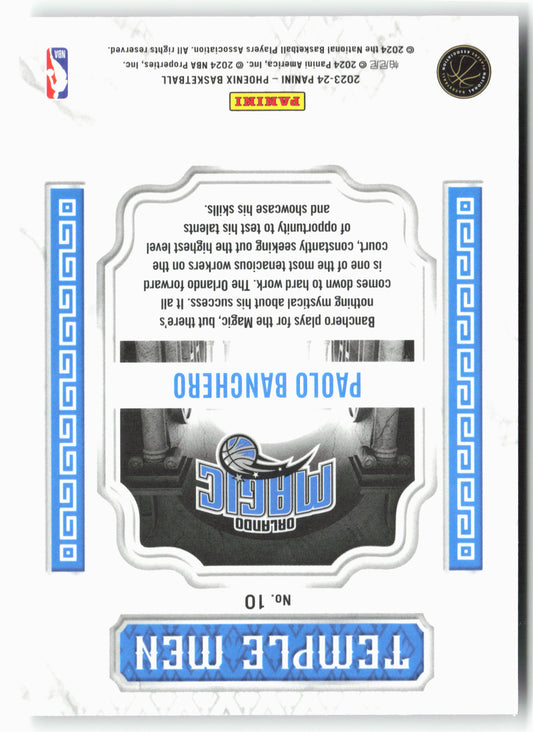 This is a nice example of a 2023-24 Panini Phoenix #10 Paolo Banchero Temple Men Other important information about this card:In 2023 Paolo Banchero played for the Orlando Magic.Please check...