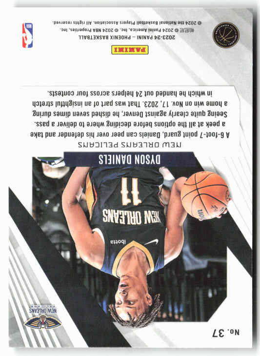 This is a nice example of a 2023-24 Panini Phoenix #37 Dyson Daniels Phoenix Red Ice Other important information about this card:In 2023 Dyson Daniels played for the New Orleans...