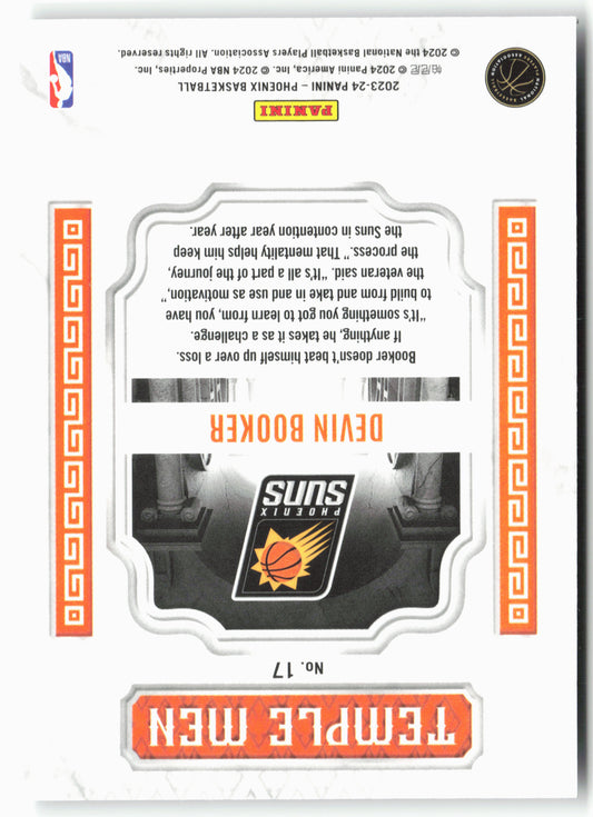 This is a nice example of a 2023-24 Panini Phoenix #17 Devin Booker Temple Men Silver Other important information about this card:In 2023 Devin Booker played for the Phoenix Suns.Please...